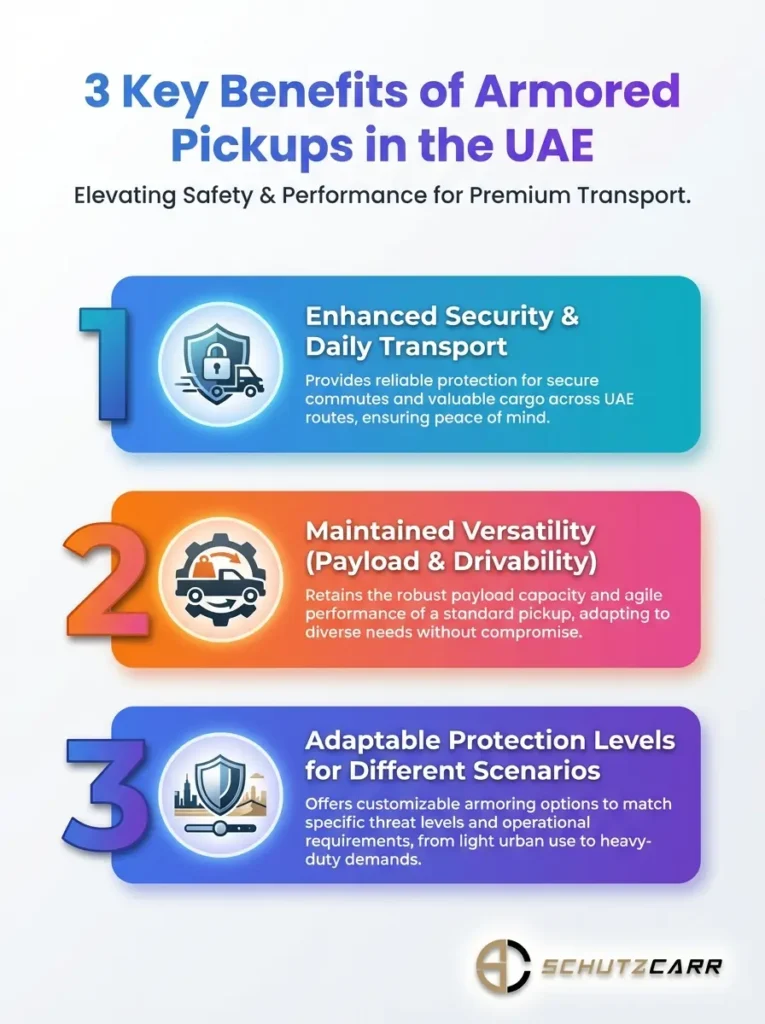 Infographic: Three Core Benefits For UAE Armored Pickup Users
