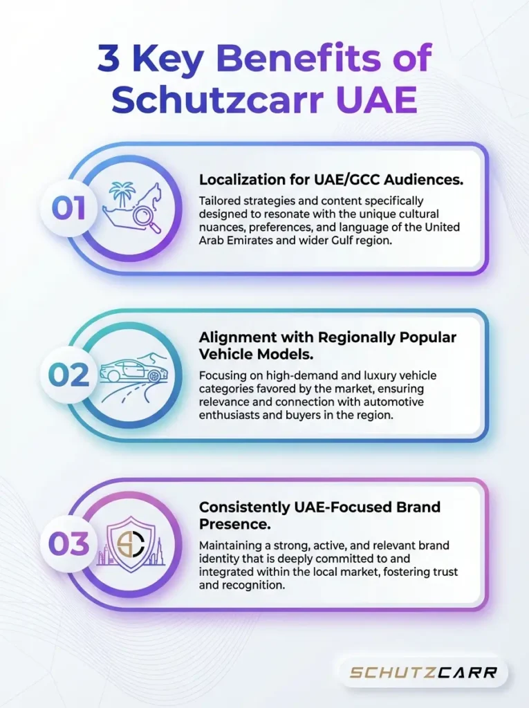 Discover the three key benefits of Schutzcarr UAE. This infographic summarizes why it’s a preferred choice for regional logistics.
